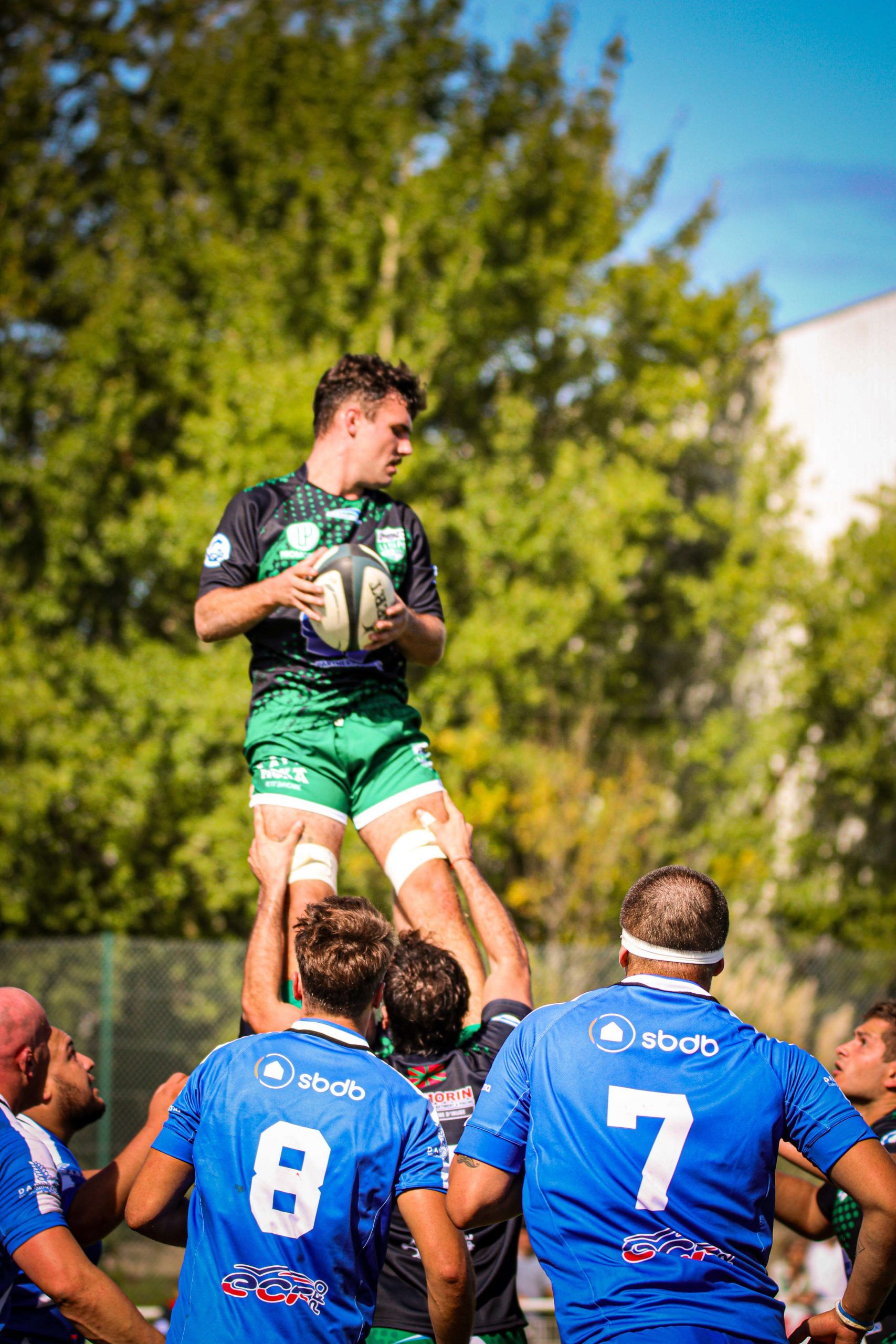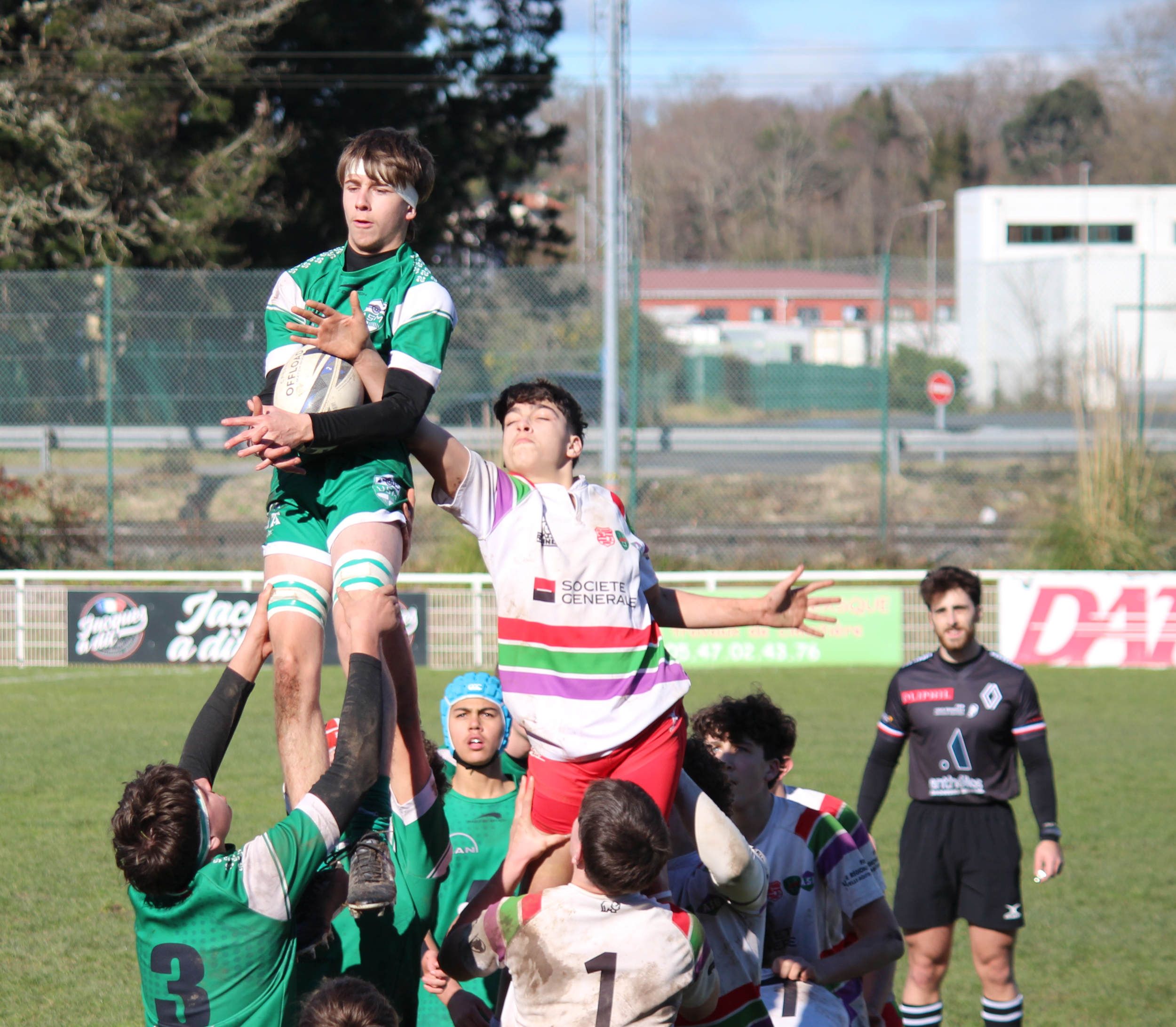 Mouguerre 27 – 6 Morlaas Mi-temps : 3 – 6 3 essais de Maxime Bourdeau ( 44°), Jon Ribaut (55°) et Jérémy Fernandes (57°), 3 transformations de Baptiste Aguerre et 2 pénalités de Baptiste Aguerre (6° et 50°) Le groupe des Verts : Baptiste Aguerre – Nathan Beyler, Lucas Louit,