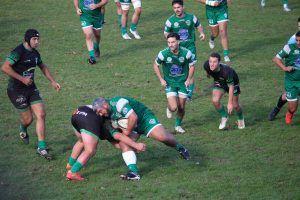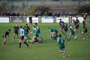 Cette rencontre, ce derby a tenu toutes ses promesses, surtout pour nos couleurs, avec une avalanche d’essais et un déroulement exemplaire de bout en bout. Le début de match voyait les 2 équipes se rendre coup pour coup et on atteignait la 1/2 heure de jeu avec un léger avantage pour les visiteurs, 12 à 10. Les Verts faisaient feu de tout bois mais la défense de Larressore arrivait à colmater les brèches, bien aidée par des maladresses ou des mauvais choix de notre part. Mais la fin de la mi-temps fut cruelle pour l’Inthalatz avec 2 belles concrétisations par Baptiste Mariescu (un essai de filou sur pénalité rapidement jouée) et par Peio Ribaut sur une belle attaque, essai transformé par Iban Serres. Les citrons étaient amers côté Larressore, distancé de 10 points, 22 à 12.